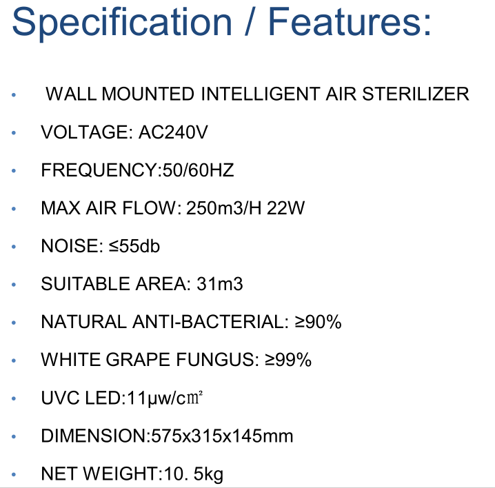 Air Purifier Sterilizer WELLECEP-260H